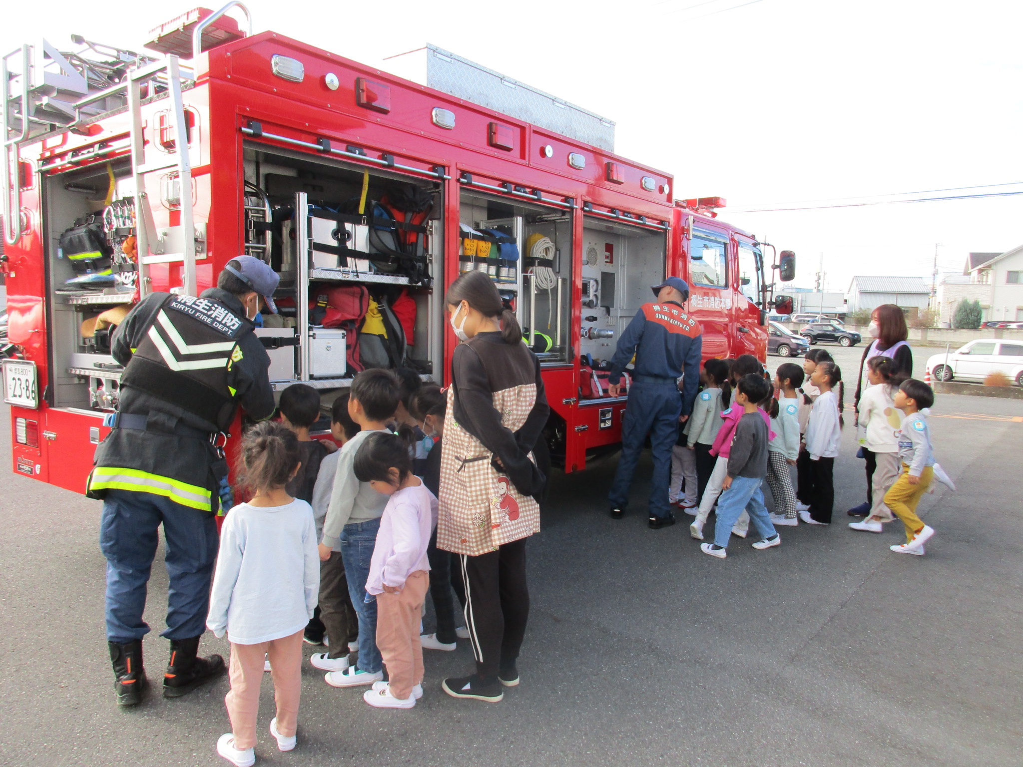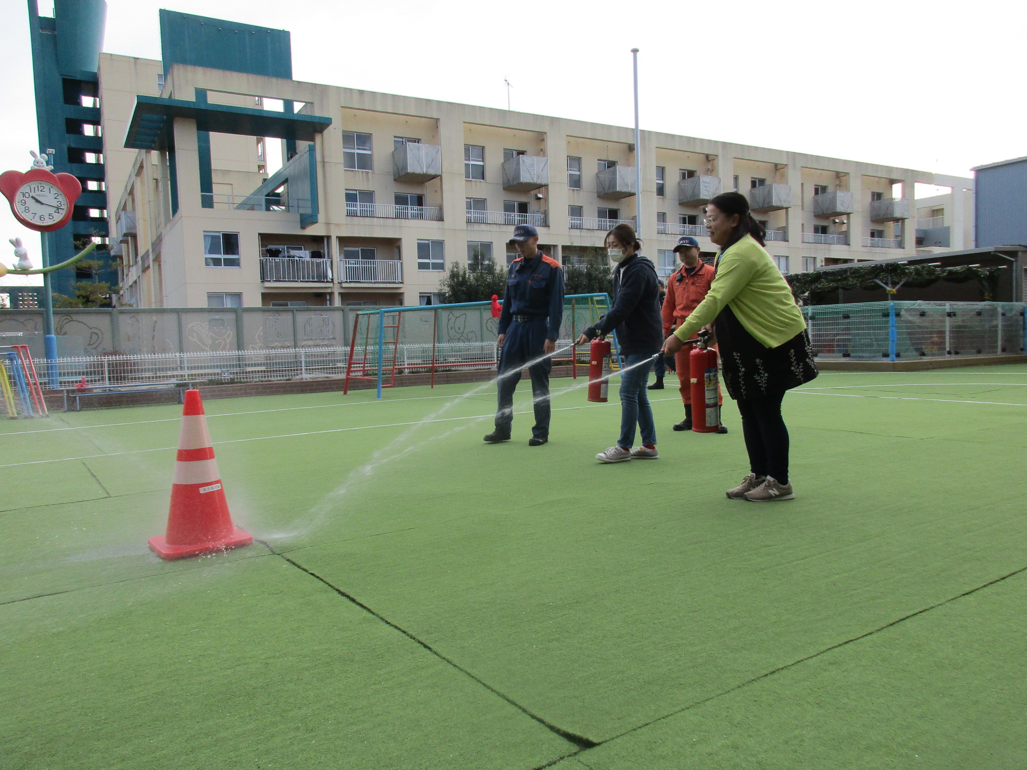 令和7年11月18日みどり消防署の消防士さんが来て、消火訓練の指導をしていただきました。