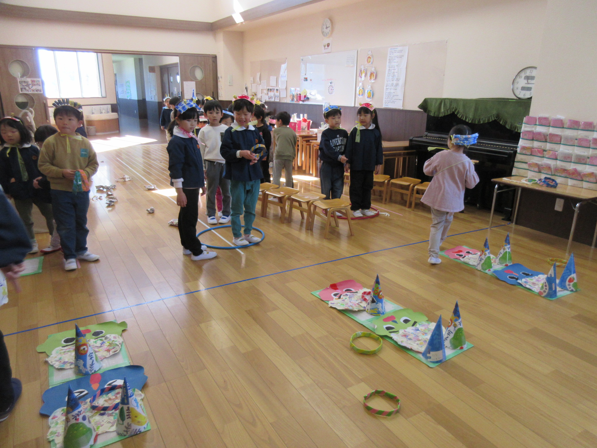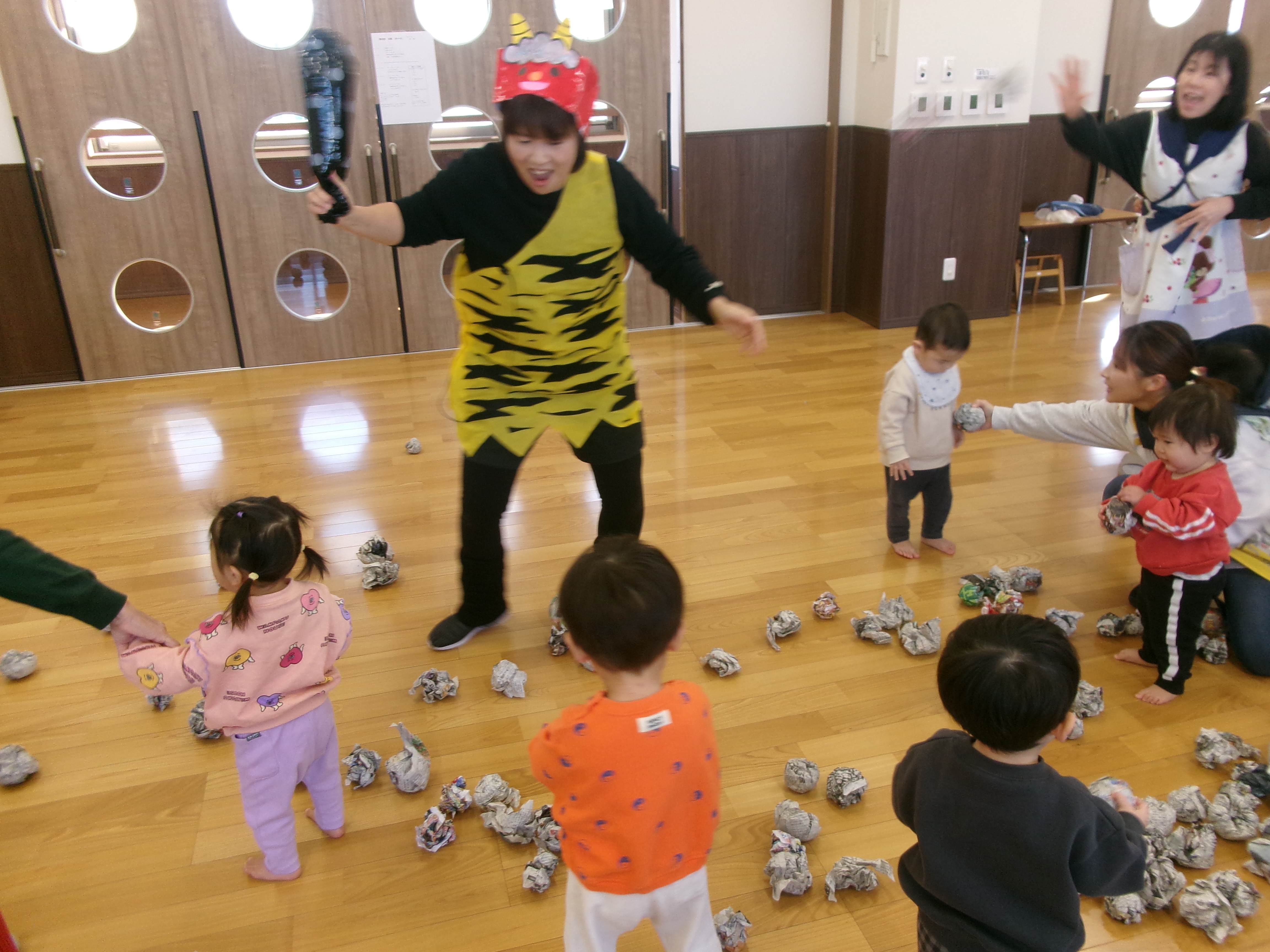 「鬼は外〜!福は内〜!」子どもたちの元気な声が響きわたりました♪ 鬼の折り紙・塗り絵・ボーリングや輪投げなど様々な遊びを楽しみました!