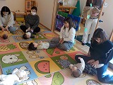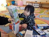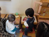 ↓↓月の数字をクリックするとおたより(PDF)が見れます。 11月号 12月号 26日~予約開始します。 カレンダー作りは人数に達した為 締め切らせていただきます。 ★予約日★以外は連絡なしで利用できます。 予約は2日前までにお願いします。 お待たせいたしました!! カレンダー作りの詳細です✨ ![]() ↑1枚の写真で仕上げても👌 ![]() ↑複数の写真を切り取って 可愛いイラストを描いても👌 こんな感じで12カ月分を仕上げて まとめて完成になります😊 時間がかかってしまうので複数枚使う方は 切り取って持参することをおすすめします* 分からないことはお気軽に聞いてください♪ 12月5日 自由遊び おままごとごっこで本物の野菜を使って サペレメゾットをしました♪ お皿に上手に盛り付けたり しなしなになるまで握りしめていた子も・・・😊 ![]() ![]() ![]() ![]() ![]() ![]() 12月4日 自由遊び 今日は可愛いドラえ○んが遊びに来てくれました♪ よーく見るとタケコプターもついてます😊 上手にずり這いも披露してくれました♡ ![]() ![]() 12月3日 自由遊び お互いがお友だちのことを気になって 近づく姿に癒されました😊 ![]() ![]() ![]() ![]() ![]() 12月2日 自由遊び ずり這いやつかまり立ちが上手になり 行動範囲が広がって探索しながら 楽しんでいた男の子🌟 おままごとが好きでお話も上手に 出来るようになり、帰るころには 保育者とゲラゲラ笑い合っていた女の子♪ また明日もお待ちしています😊 ![]() ![]() ![]() ![]() 12月1日 自由遊び 今日から12月ですね🎄 今年も残すところ1カ月きりました。 外が暖かかったので砂遊びや雲梯で 体を動かして楽しく過ごしました♪ ![]() ![]() ![]() ![]() ![]() 11月28日 自由遊び&誕生会 11月生まれのお友だちの誕生会でした♪ みんなでお祝いしてお母さんたちの趣味や 苦手な家事、好きな食べ物について お話をして盛り上がりました😊 ![]() ![]() ![]() ![]() ![]() ![]() ![]() ![]() 11月27日 自由遊び 室内でのんびりまったり過ごしました♪ ずり這いが上手になりみんなで つかまり立ちをして顔を見合わせてる姿が 可愛かったです♡ ![]() ![]() ![]() ![]() ![]() 11月26日 下痢・嘔吐処理方法 看護師による嘔吐処理の話がありました✨ 嘔吐はいつ起きるかわからないので 嘔吐セットが用意できてると安心ですね♪ 参加して下さった方ありがとうございました😊 ![]() ![]() ![]() ![]() ![]() ![]() ![]() 11月25日 自由遊び 園内見学をしたり室内玩具で 遊びました。日常の育児について お互いに情報交換の時間を作りました ![]() ![]() ![]() ![]() ![]() 11月21日 センサリーボトル作り お友だちが気になって近づいたり ママの取り合いをしてやきもち妬いてる 姿がかわいらしかったです♡ ![]() ![]() ![]() 11月20日 自由遊び 室内で沢山遊んだ後、園庭に出て 日を浴びたらおしりを上げて セルフねんねしていました😊 ![]() ![]() 11月19日 身体測定&手足型製作 0歳児クラスと園庭で遊びました♪ 室内では滑り台に挑戦したり つかまり立ちやうつ伏せを 華麗に披露してくれました😊 ![]() ![]() ![]() ![]() 11月18日 消火避難訓練&自由遊び 参加していただきありがとうございました🚒 記念に消防車と写真撮れて、 間近で見られて嬉しそうでしたね♪ お洋服も消防コーデで可愛かったです♡ ![]() ![]() ![]() ![]() ![]() ![]() ![]() ![]() 11月17日 身体測定&手足型製作 沢山のお友だちが来てくれました♪ 赤ちゃん組は室内でまったり過ごし 1歳以上のお友だちは園庭でも 体を動かして遊んでいました😊 ![]() ![]() ![]() ![]() ![]() ![]() ![]() ![]() ![]() ![]() ![]() 11月14日 センサリーボトル作り 赤ちゃんを対象としてセンサリーボトルを 作りました♪作っているママたちは キラキラした瞳で楽しんで作ってくれました✨ 出来上がったボトルを握ったり 眺めたり・・・お家でも楽しんでください♡ ![]() ![]() ![]() ![]() ![]() 11月13日 自由遊び つかまり立ちや玩具に手を伸ばす姿 鏡に笑いかけたり沢山の笑顔を見せてくれました クレヨンで千歳飴の袋にお絵描きし 2歳のお友だちは赤ちゃんに優しく 触れていました♪赤ちゃんも気持ちよさそうに 過ごしていました♪ その様子に癒されました♬ ![]() ![]() ![]() ![]() 11月12日 七五三製作 可愛い千歳飴の袋が完成しました♪ 飴を入れてお持ち帰り♡ 体調を崩しやすい時期ですので 急なキャンセルの場合でも 別日に出来るので安心してください😊 ![]() ![]() ![]() 11月11日 自由遊び みんなでブロックで遊んだりおままごとをして 遊びました♪ピアノの音に反応する 赤ちゃん組がとても可愛かったです♡ ![]() ![]() ![]() ![]() 11月10日 自由遊び 沢山のお友だちが遊びに来てくれました♪ 可愛い笑顔に癒されました😊 ![]() ![]() ![]() ![]() ![]() ![]() ![]() ![]() ![]() 11月7日 自由遊び ![]() ![]() ![]() ![]() 11月6日 自由遊び サンタさんに何をお願いしようかなっ? という話題で盛り上がりました🎁 ブラックフライデーでお得にゲット出来るといいですね♪ ![]() ![]() ![]() 11月5日 自由遊び 今日も5組のお友だちが来てくれました♪ 人形の赤ちゃんにご飯をあげたり 自分の