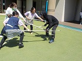 〈不審者侵入〉 〈不審者確保〉 〈サポーターさんの講話と園児の実演〉