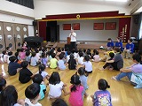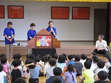 令和7年6月スクールサポーターさんが来園し防犯訓練を行いました。