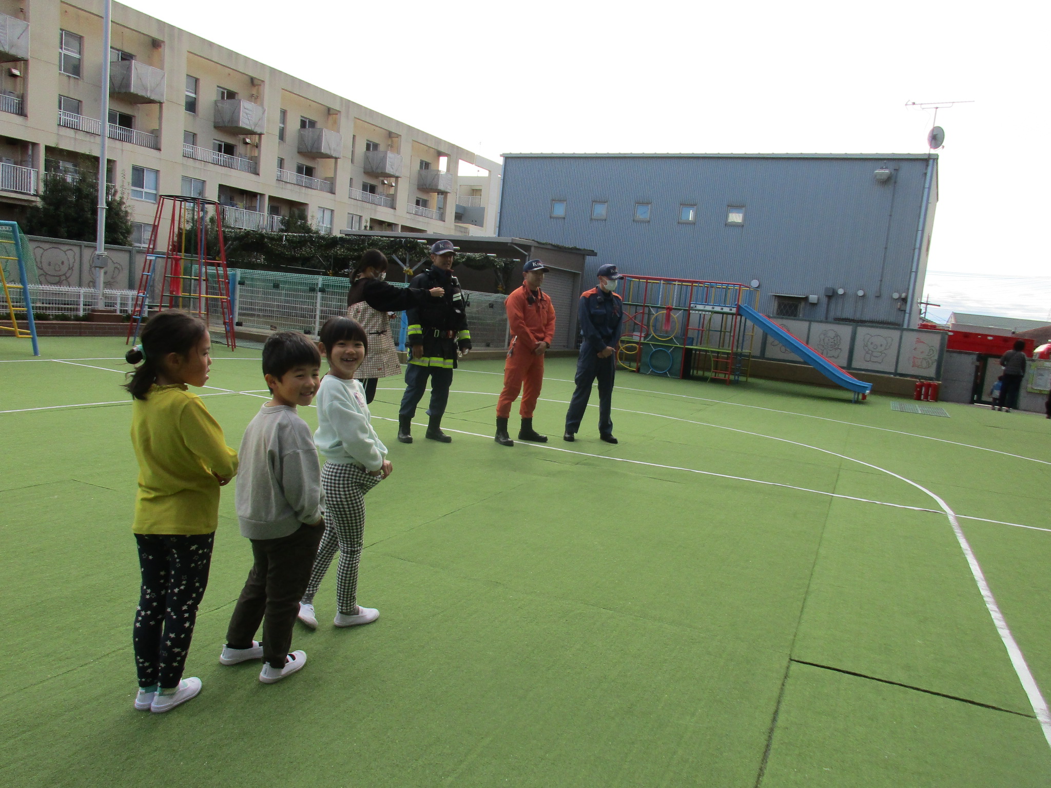 令和7年11月18日みどり消防署の消防士さんが来て、消火訓練の指導をしていただきました。