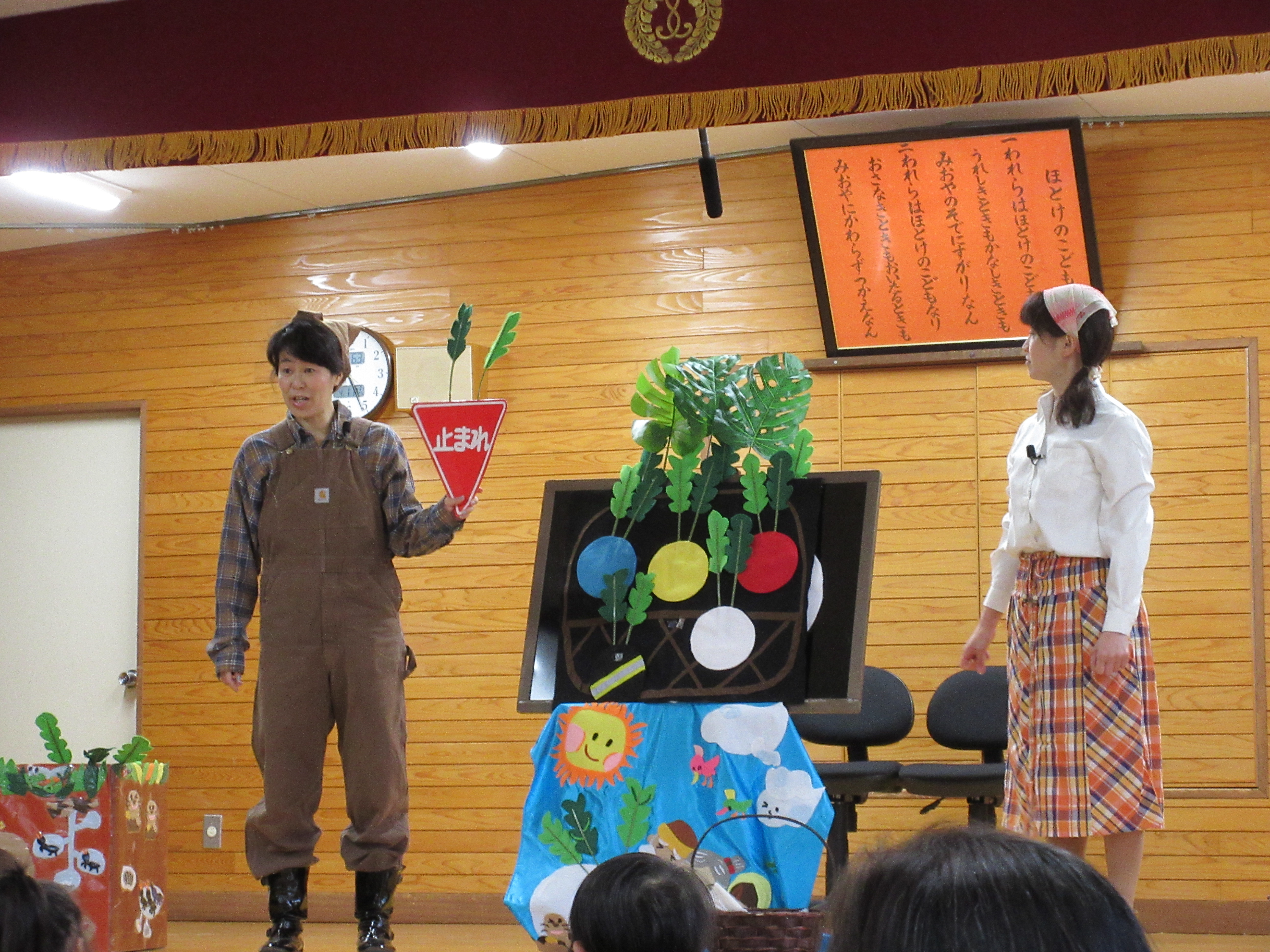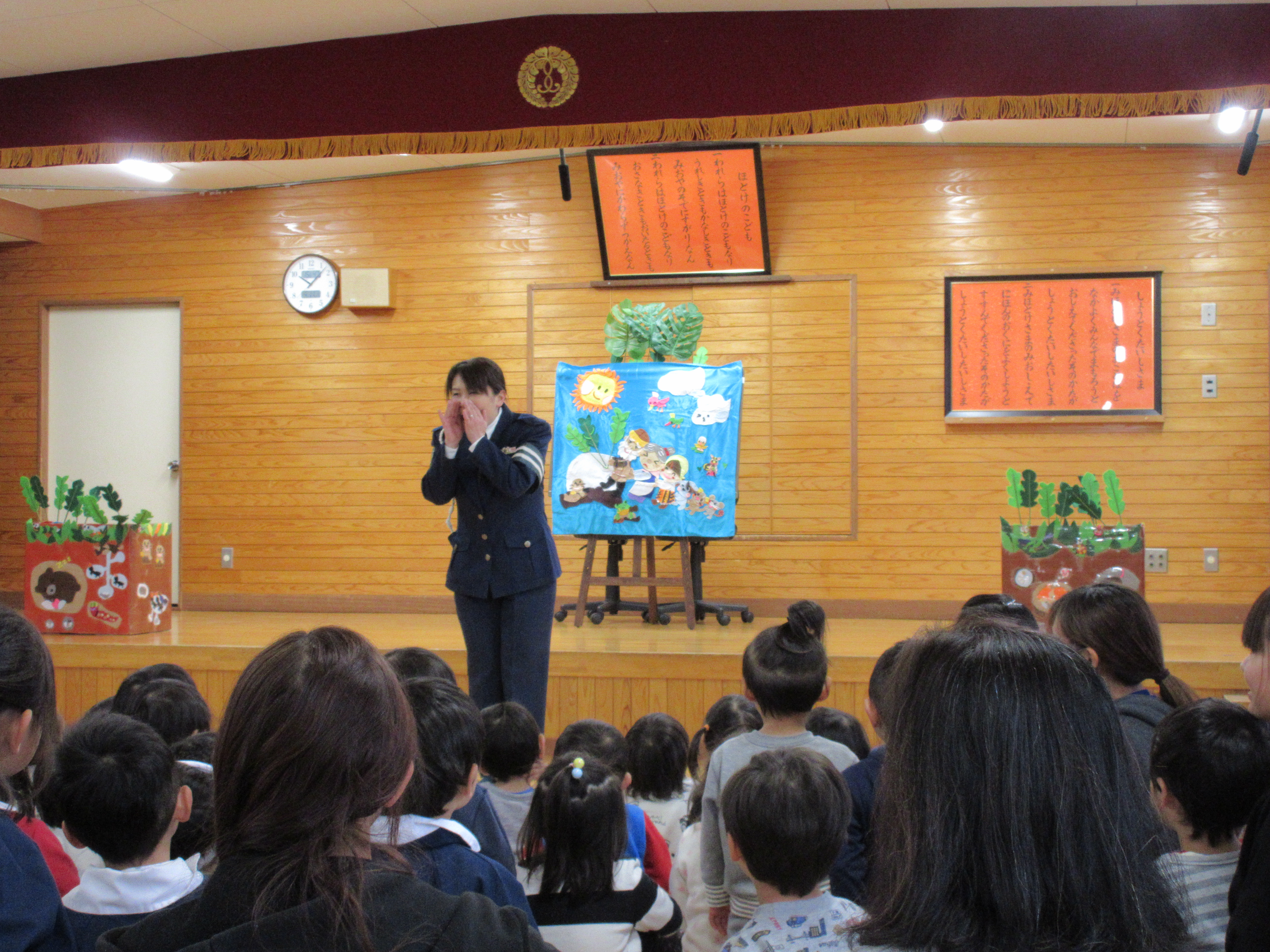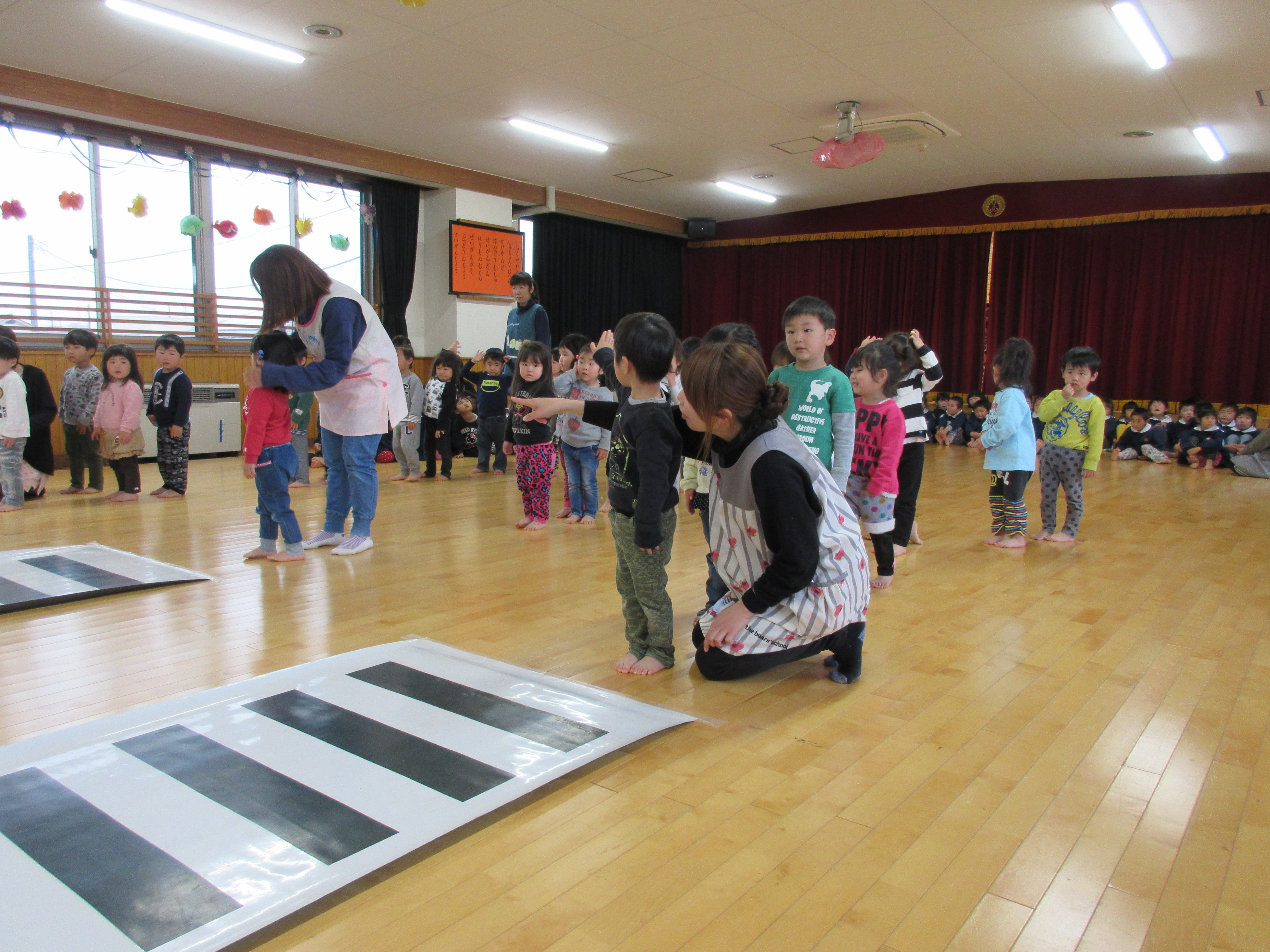交通ヘルパーさんから劇を通してお話 横断歩道の渡り方
