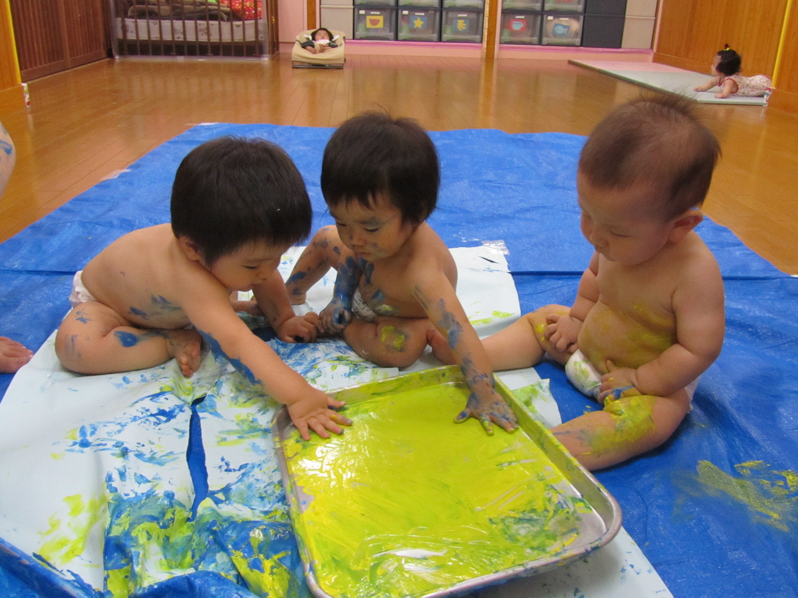 プールやボディペインティング、感触遊びなど楽しんでいます。